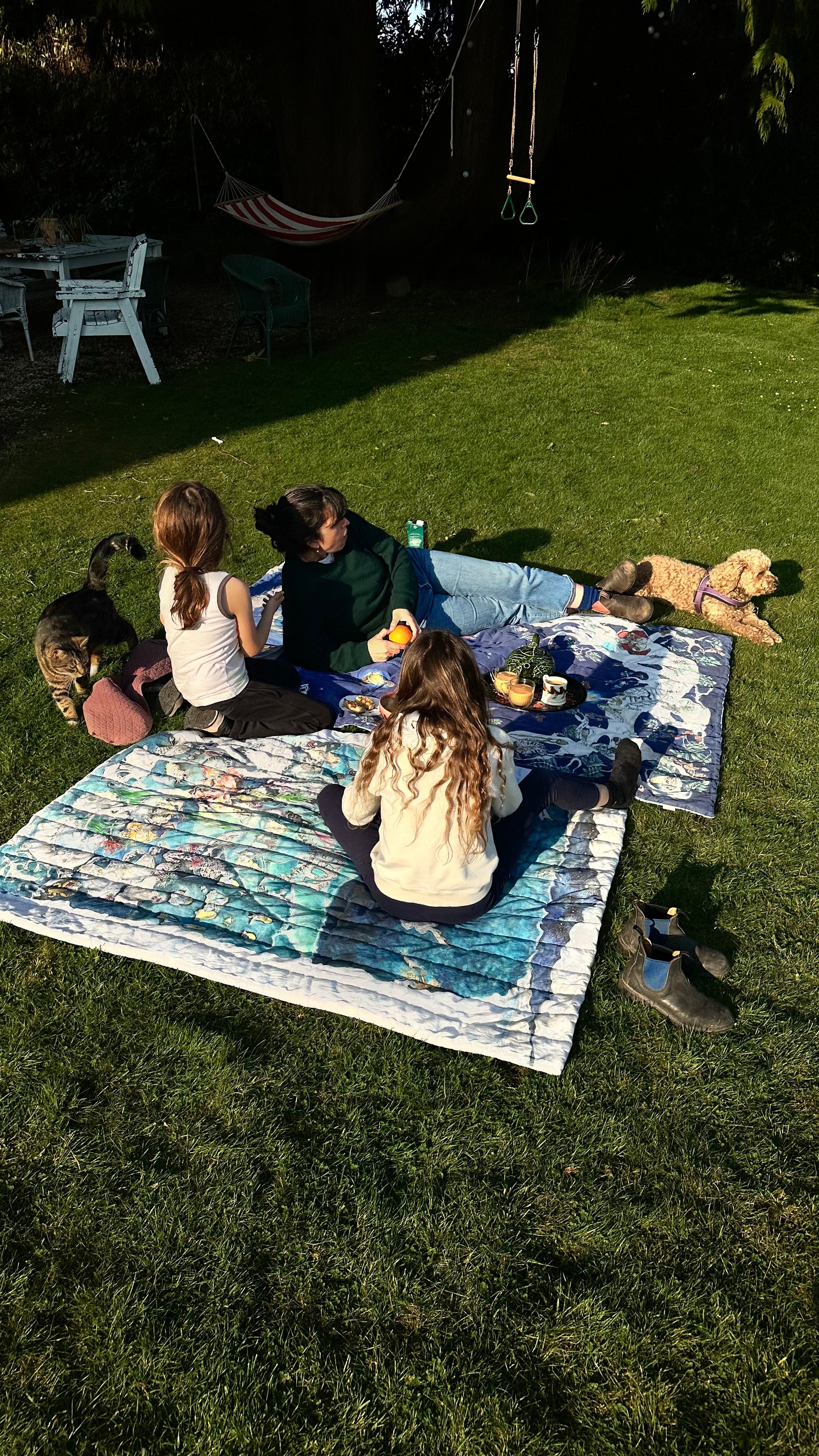The Ross family feel like an extension of my own - whilst I’ve known them, they have all been based in Ramsgate. The family home is the warmest, most welcoming and most inspiring of homes to visit - I’ve never been in a house where I could just walk around for so long in wonder looking at all the incredible things that have been collected and created. Alice’s dad Robbie is a painter and nothing is safe from his brush - the walls are filled with his beautiful work and cupboards, mirrors, guitars and even the staircase and hallways have been adorned with his painting. Alice’s mum sadly passed away in 2024 but the sofas are still strewn with her appliquéd and embroidered cushions and the house holds on to the warmth of her home making and inquisitive mind.